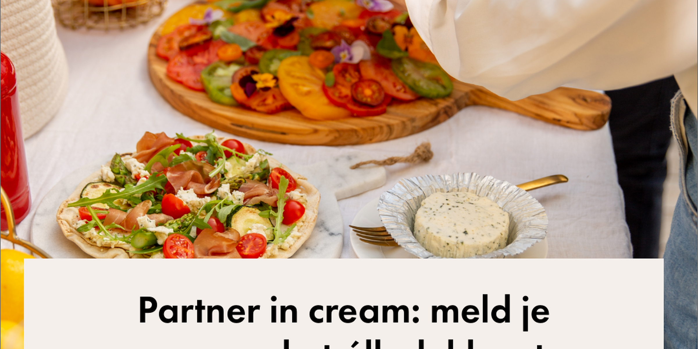 We toverden onze binnentuin om naar een heerlijke plek vol groen en picknicktafels en nodigden &C-volgers uit om aanwezig te zijn met hun eigen ‘partner in cream’. Kirsten van der Stelt (KirKookt) verzorgde voor het diner een illustratieworkshop om zelf menukaartjes te maken en Claudia Damen (Foodfromclaudnine) fotografeerde heel de boel én bedacht zelf een van de recepten. Chefkok Estée Strooker worked her magic en kookte speciaal voor deze uitverkoren lezeressen verschillende zomerse recepten om van te smullen. Uiteraard allemaal met Boursin, want dat maakt alles beter. Van gegrilde komkommer tot mossel in papillot. De receptvideo’s zijn de komende periode te zien op onze socials. Mocht je je schermtijd willen minderen, dan vind je nu in de nieuwste &C ook een fysiek receptenboekje waarin alles wordt uitgelegd en waarin we ook tafelstylingtips geven voor je ultieme zomerse diner.